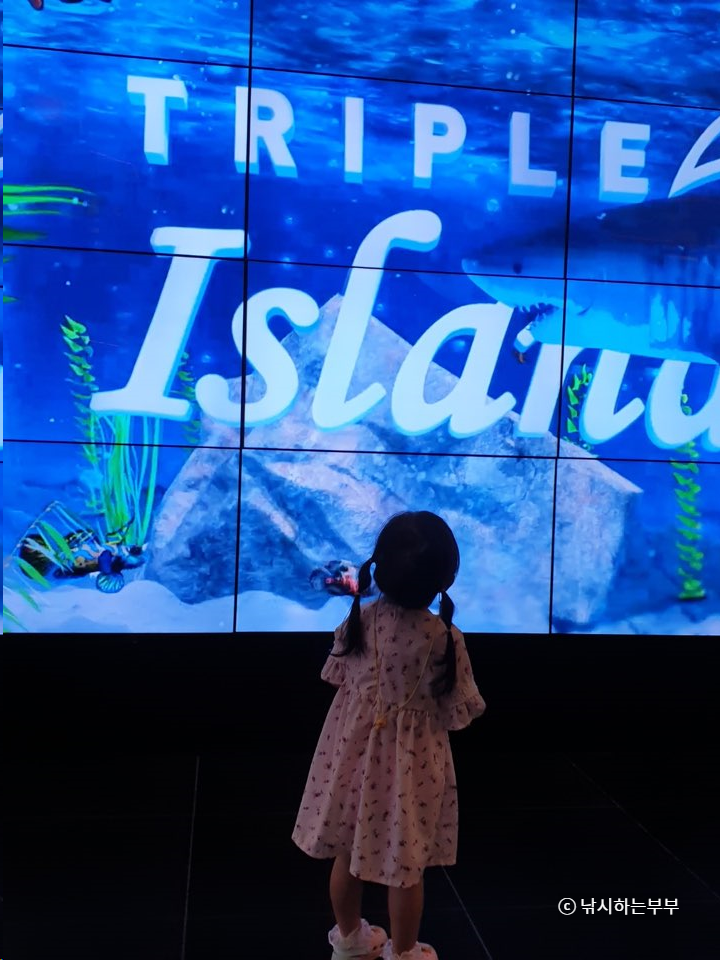 트리플 스트리트에 주차를 하고 걸어가던 중 벽면에 마치 아쿠아리움 마냥 영상이 나오자